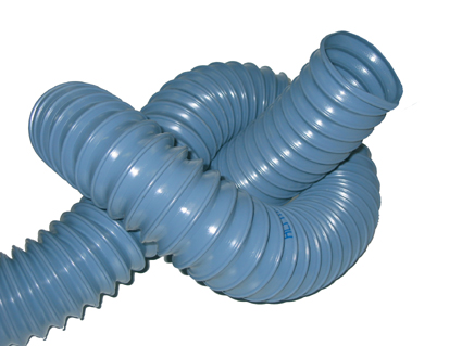 Very flexible grey pvc hose for suction and conveying air or fumes. Can be grounded by means of both steel ends.
